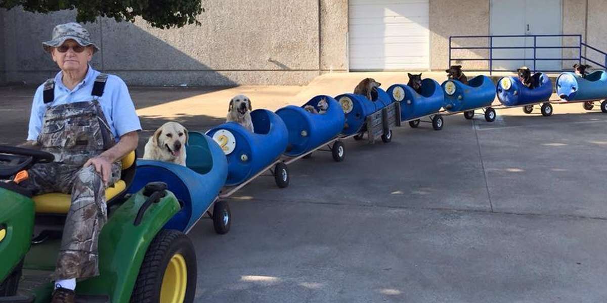 “I started out with my tractor. I had a little trailer and I put four or five dogs in there and took them riding. Then more dogs started to show up and I said, ‘Uh-oh! That’s not enough room!’ That’s when I came up with that,” Bostick told NBCDFW explaining how the dog train came into being.